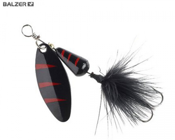Spinner für Barsch, Forelle und Döbel. Mit nadelscharfen Mustad Haken. Dank Sprengring kann der Drilling einfach zB.gegen einen Einzelhaken getausch werden.