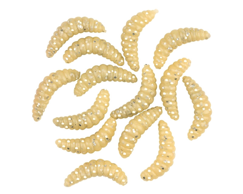 natur-glitter Inhalt: 15 Stück Bienenmaden sind ein Topköder für Forellen und andere kleine Räuber. Speziell beim Fischen in Forellenseen ein Hakenköder erster Klasse. Die neuen, künstlichen Bienenmaden sind dem Original naturgetreu nachempfunden. Sie sind superweich und halten trotzdem hervorragend am Haken.